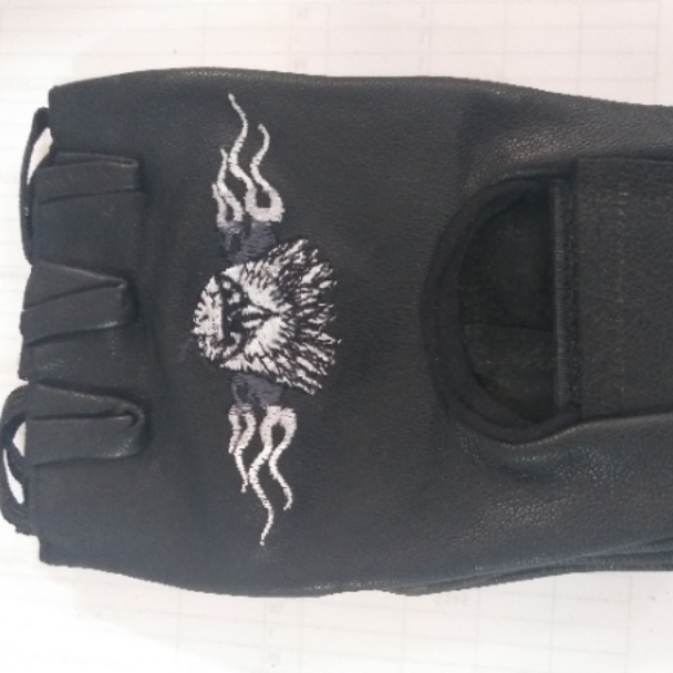 Cowhide Black Fingerless Embroidery Gloves, Velcro Wrist Grip, Fresh Leather, No patches, Any specifications are
